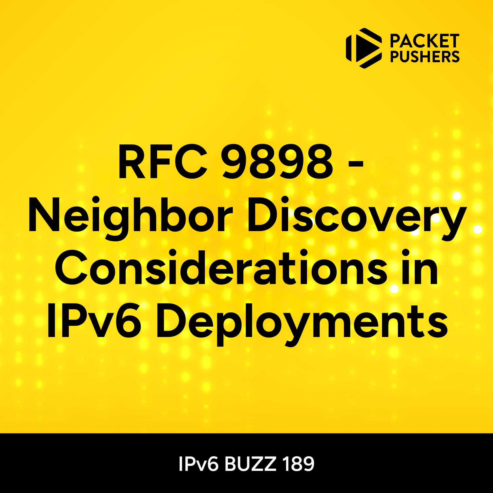 EP 189 | DECEMBER 4, 2025RFC 9898 - Neighbor Discovery Considerations in IPv6 DeploymentsThe newly published RFC 9898 is the discussion of today's podcast. The IPv6 Buzz crew explore the complexities of neighbor discovery and review solutions for both operators and architects. They share how this RFC serves as a single, detailed resource to improve your understanding of neighbor discovery and to reduce the potential attack surface in your IPv6 networks. | LISTEN NOW |